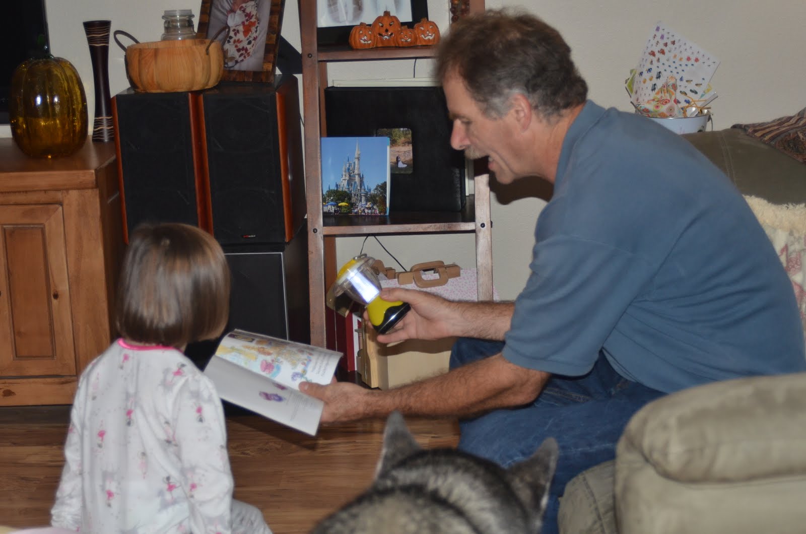 Madison got out her lantern for Grandpa (he couldn't read with the light we had)